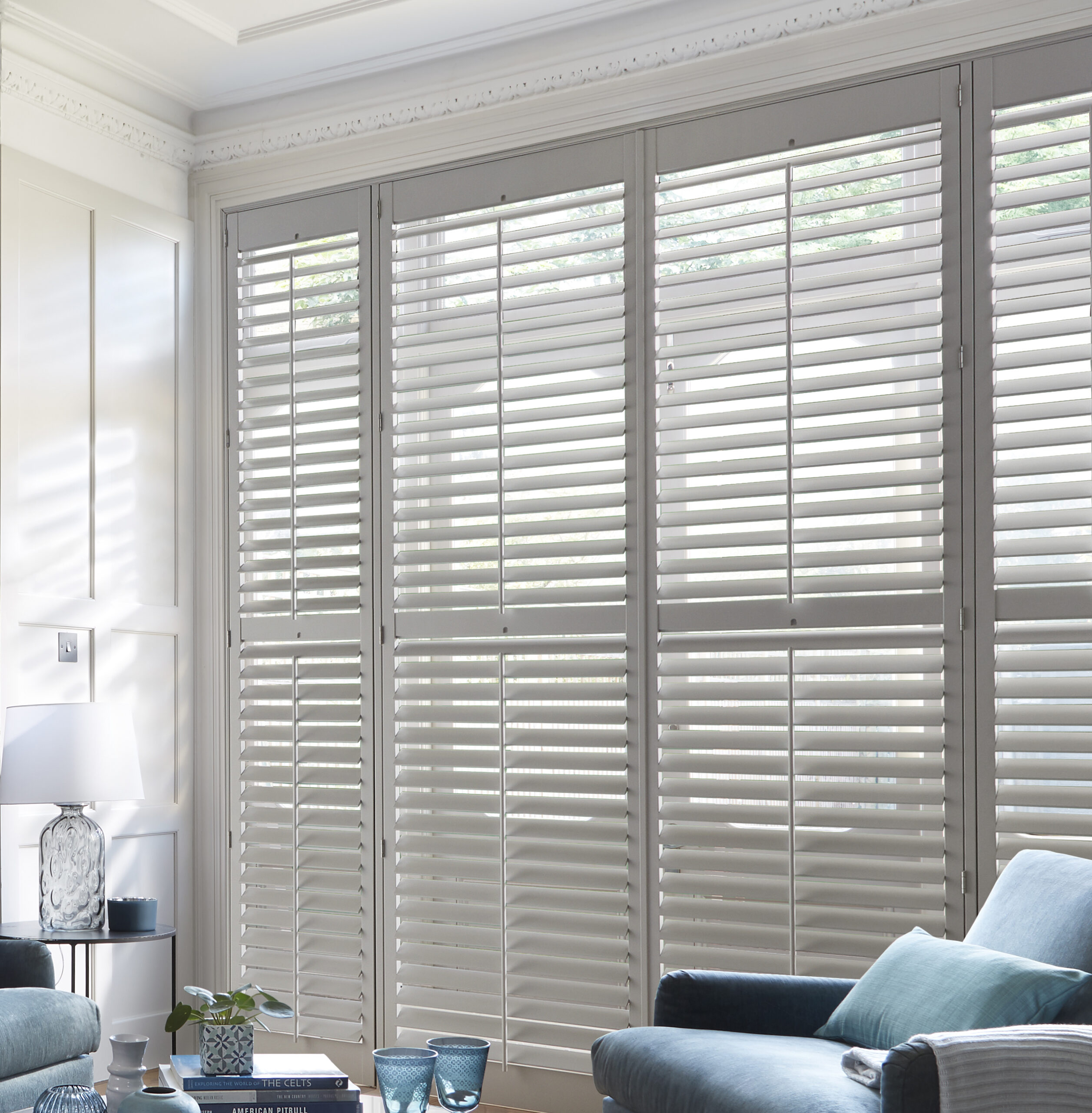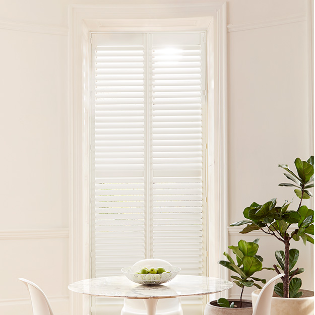 Full height style shutters have a clean, minimal look and will cover the whole aperture, window or door, making them fit and blend in with every room. Quite often, they have a divider rail so you can operate the slats above and below. This allows you to independently to control the light entering the room according to your preference. These shutters are a very popular option as they can be fitted to any window. They are also a good choice for tall windows and French doors. Full height shutters are great for insulation, privacy and noise control. They are a great option for patio doors and tall windows but are equally suited for any window. They also come in all shutter types, which means you can have ABS water resistant material or MDF wood for a more affordable option compared to wood.