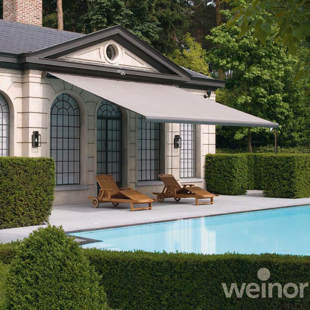 The Opal Design II awning system shaded large areas. Its classic design means it blends harmoniously with its surroundings. The attractive shape of the cassette adds a touch of sophistication to this robust and easy to operate awning system with loads of practical optional extras.