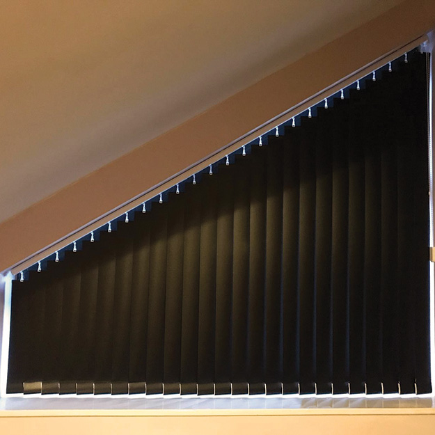 Do you have a sloped window that needs covering? Well then be sure to get your bespoke sloped Vertical blind to cover it! With their beautiful look, they make your home stand out… So why not make it stand out more with a gorgeous sloped Vertical blind to cover it.